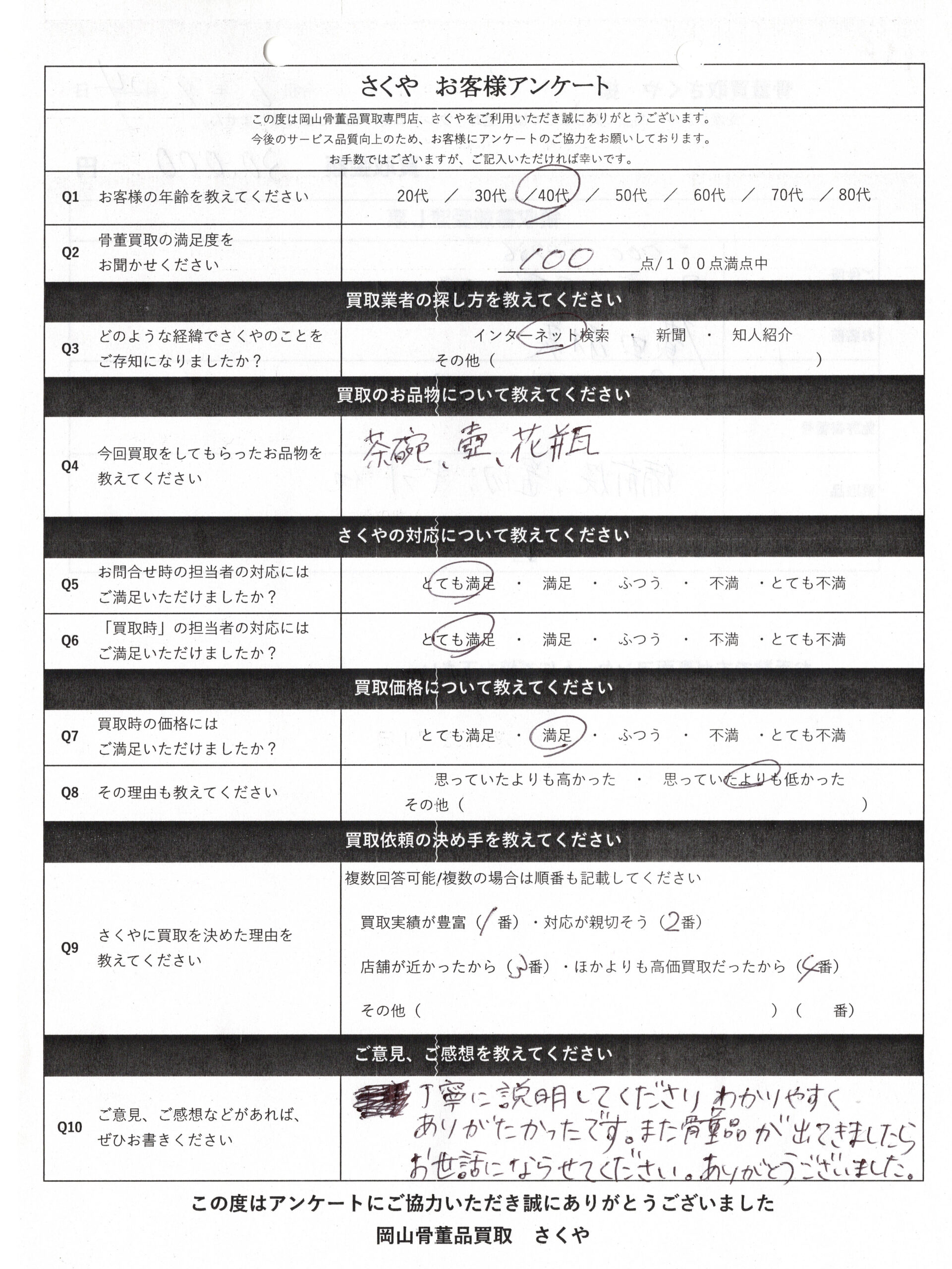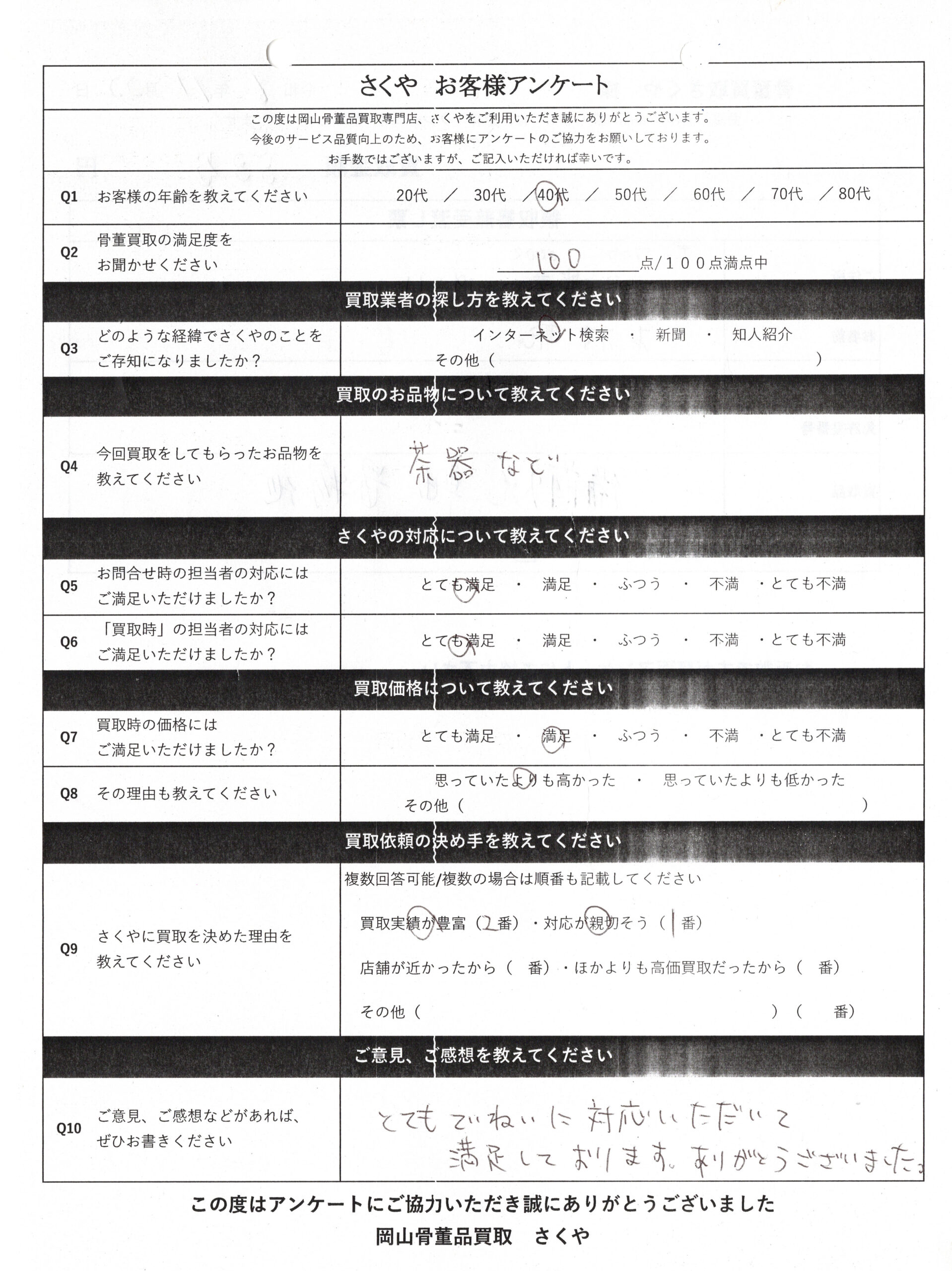 その買取は新規のお客様はもちろん、お客様のご紹介、再度の骨董買取依頼とさくやの骨董買取を「信頼」「高いご評価」いただいての実績となっています。