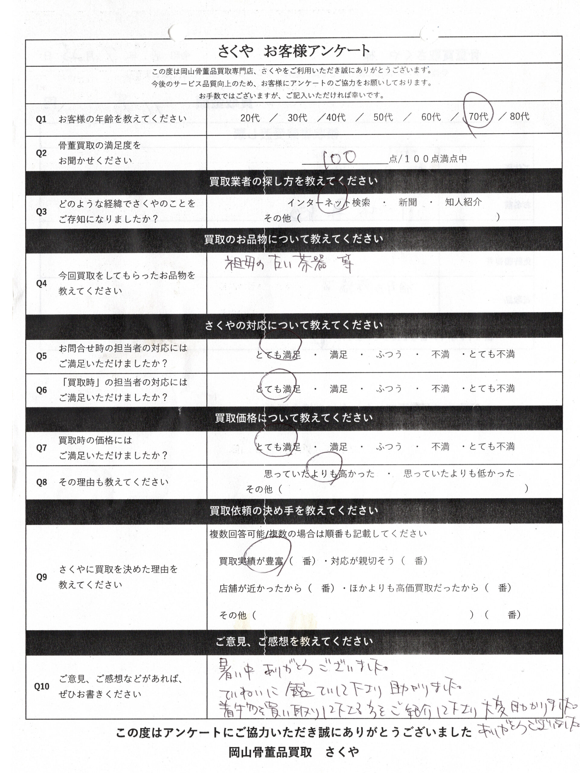 岡山で確かな目利きで美術骨董品高価買取り致します。売却処分のお考えの方骨董品買取専門さくやにお任せ下さい。 備前焼 茶道具 刀剣 鎧 武具 遺品整理 不用品処分出張査定無料!お気軽にお問合せ下さい。[0120-020-398]